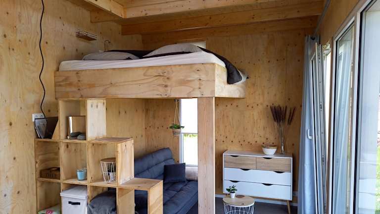 Das Tiny house het Polderhuisje verfügt über ein gemütliches Schlafzimmer, eine voll ausgestattete Küche mit Kühlschrank und Backofen sowie ein Badezimmer mit Dusche. Das Ferienhaus bietet außerdem eine Terrasse, auf der Sie den Gartenblick genießen können.