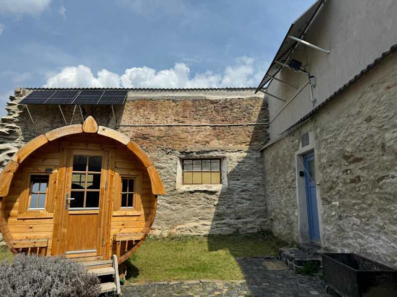 Das Tiny House mit Wohnfass bietet eine heimelige Atmosphäre und eine Terrasse zum Entspannen. Die Unterkunft ist ideal für Feriengäste, die die Ruhe der Natur geniessen möchten. Es sind verschiedene Annehmlichkeiten vorhanden, darunter ein Garten und ein Grill.