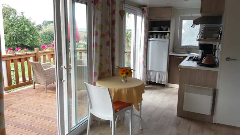 Das Chalet umfasst zwei Schlafzimmer, eine gut ausgestattete Küche mit einem Kühlschrank und einem Geschirrspüler, einen Flachbild-TV und einen gemütlichen Sitzbereich. Das Badezimmer ist mit einer Dusche ausgestattet und die Unterkunft bietet zudem einen Balkon, eine Terrasse sowie eine Kaffeemaschine.