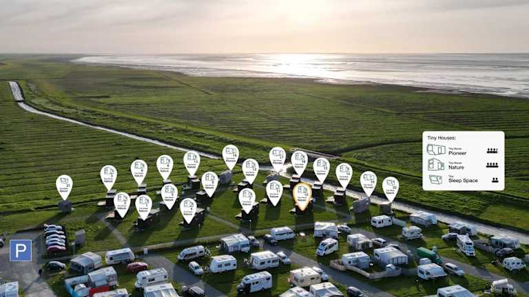 Tiny House Nature 10 Innenlage - Green Tiny Village Harlesiel bietet Übernachtungsmöglichkeiten in einem heimeligen Ferienhaus. Die Unterkunft besitzt einen Balkon und eine Terrasse, wo Gäste die frische Luft geniessen können. Ein kostenloser Privatparkplatz ist ebenfalls vorhanden. Die Umgebung ist ruhig und ideal für erholsame Ferien.