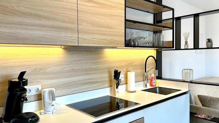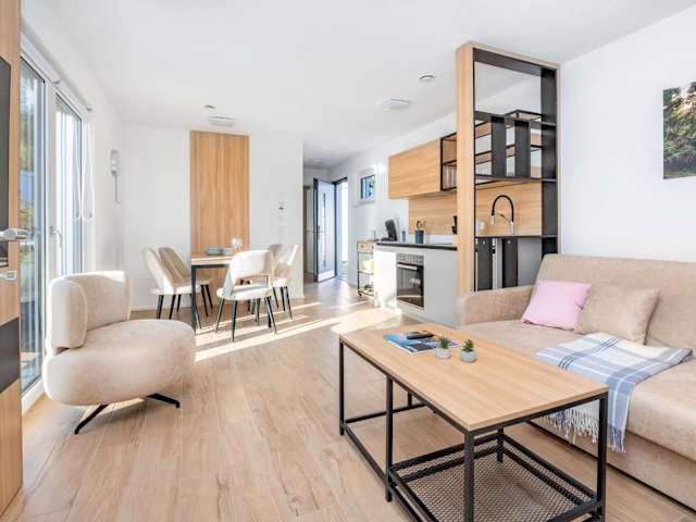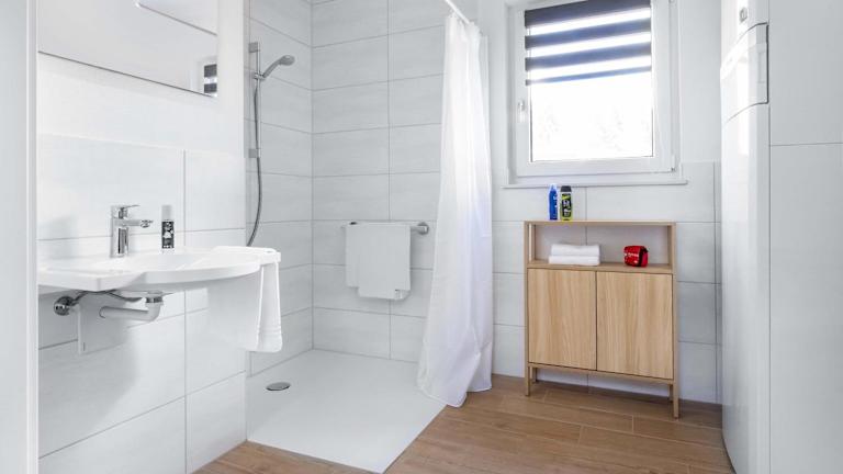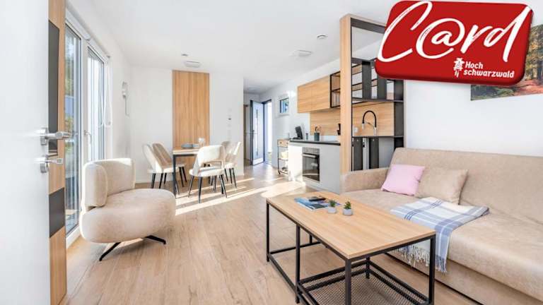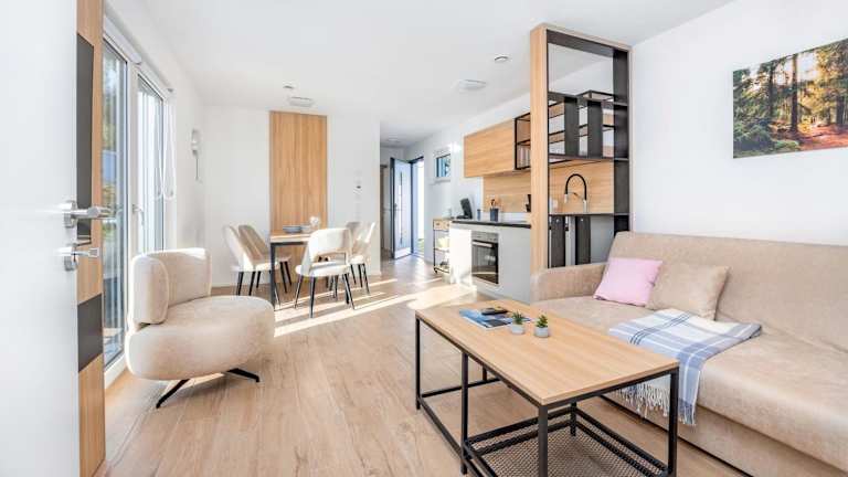 Die Tiny Houses bieten einen Sitzbereich, einen Flachbild-TV sowie eine voll ausgestattete Küchenzeile mit Kühlschrank, Geschirrspüler, Ofen, Herdplatte, Toaster, Kaffeemaschine und Wasserkocher. Jedes Tiny House verfügt über ein eigenes Badezimmer mit Dusche und Haartrockner. Die Terrasse lädt zur Entspannung ein.