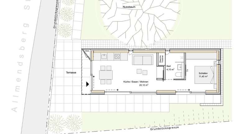 Die Unterkunft Tinyhaus Adam liegt im Freiamt, 23 km von Hauptbahnhof Freiburg (Breisgau), 24 km vom Freiburger Münster und 32 km vom Europa-Park entfernt. Die Messe Freiburg ist ebenfalls in 23 km erreichbar. Es stehen kostenlose Parkiermöglichkeiten zur Verfügung.