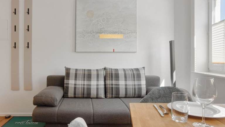 TinyHome ist eine heimelige Ferienwohnung in Heiligenhafen und bietet Stadtblick sowie Zugang zu kostenlosem Wifi. Sie beinhaltet einen kostenlosen Privatparkplatz und kostenlose Fahrräder für die Gäste.