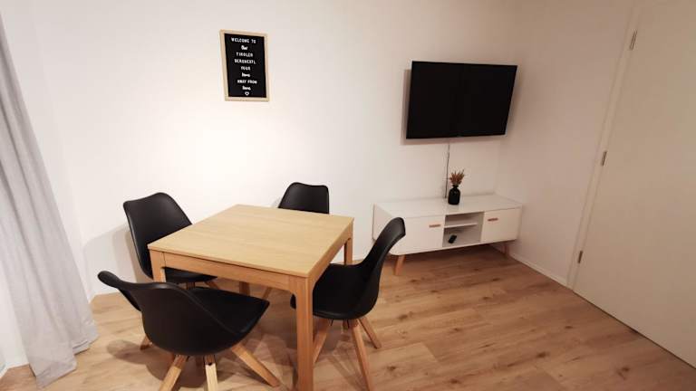 Das Tiroler Bergnestl verfügt über ein Schlafzimmer und ein Wohnzimmer. Die Unterkunft bietet einen Flachbild-TV, eine gut ausgestattete Küche mit Kühlschrank und Mikrowelle sowie ein Badezimmer mit Dusche. Handtücher und Bettwäsche werden zur Verfügung gestellt.