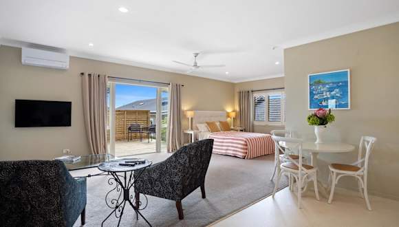 Alle Gästezimmer in der Unterkunft Titoki Cottage sind mit einer Kaffeemaschine, Klimaanlage und einem eigenen Badezimmer ausgestattet.