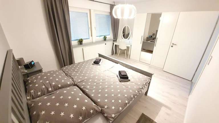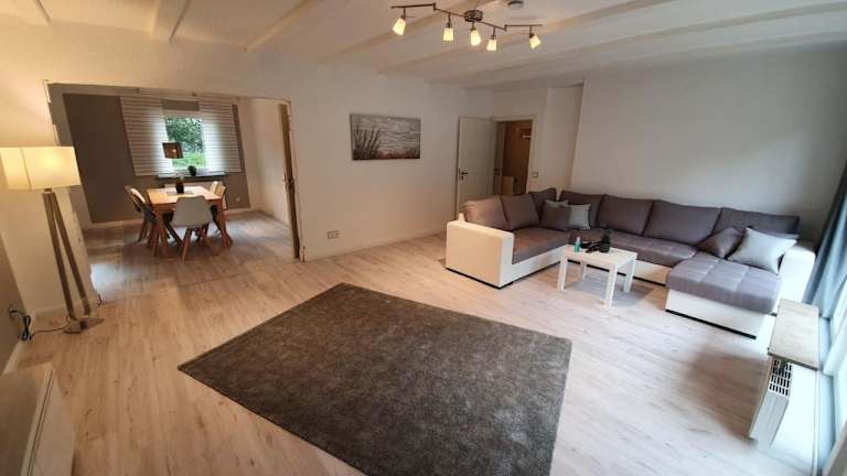 Die Tolle 125m² Erdgeschoßwohnung im Einzelhaus bietet eine geräumige Unterkunft mit kostenlosem WLAN. Die Ferienwohnung ist in einem Einzelhaus untergebracht und zeichnet sich durch einen Garten sowie eine Terrasse mit Gartenblick aus. Für den Fahrzeugbedarf stehen ein kostenloser Privatparkplatz zur Verfügung.
