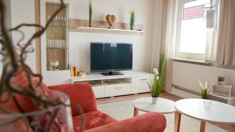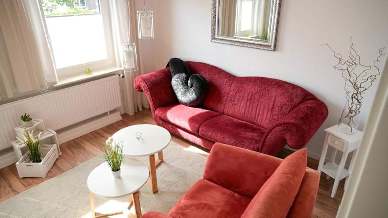 Die Ferienwohnung besteht aus 2 Schlafzimmern, einem gemütlichen Wohnzimmer sowie einer voll ausgestatteten Küche mit Kühlschrank und Kaffeemaschine. Ein Badezimmer mit Badewanne und Haartrockner ist ebenfalls vorhanden. Handtücher und Bettwäsche werden zur Verfügung gestellt.