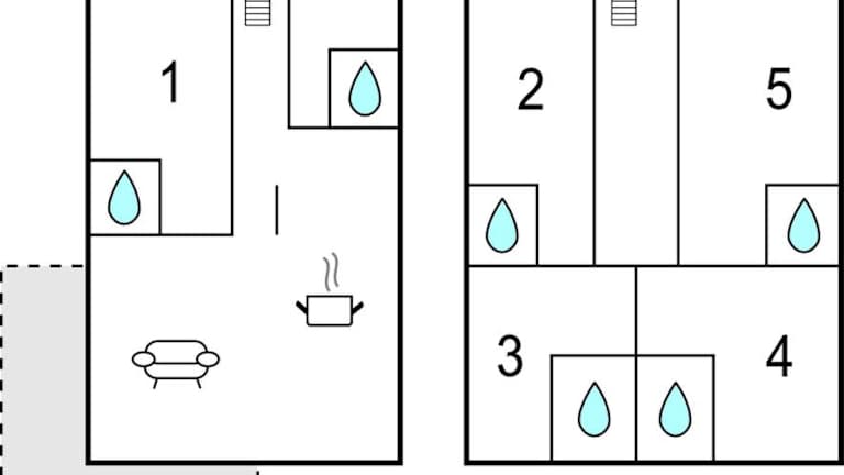Die Unterkunft verfügt über 5 Schlafzimmer und 5 Badezimmer, die mit Duschen ausgestattet sind. Das Feriehaus bietet ein Wohnzimmer mit einem Essbereich, eine Küche mit Kühlschrank, Geschirrspüler und Herdplatte sowie einen DVD-Player und ein TV-Gerät. Eine komfortable Unterkunft, die den Gästen die Möglichkeit bietet, sich selbst zu versorgen.