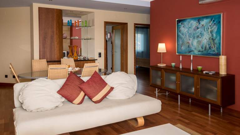 Top Quality Apartment bietet einen Balkon mit Berg- und Poolblick sowie einen ganzjährig geöffneten Aussenpool, eine Sauna und einen Whirlpool. Die Unterkunft ist von einem Garten umgeben und hat eine Veranda sowie eine Terrasse mit Meerblick.