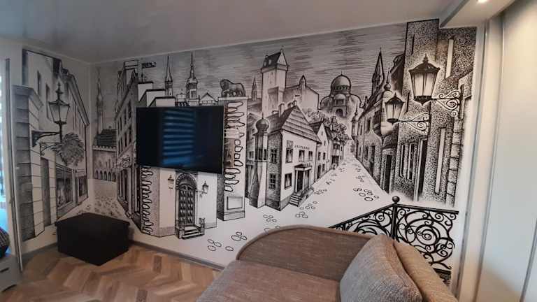 Die Ferienwohnung ist ausgestattet mit einem Schlafzimmer, einem Badezimmer, Bettwäsche und Handtüchern. Zudem verfügt sie über einen Flachbild-TV mit Kabelkanälen, einen Essbereich, eine voll ausgestattete Küche sowie einen Balkon mit Stadtblick.