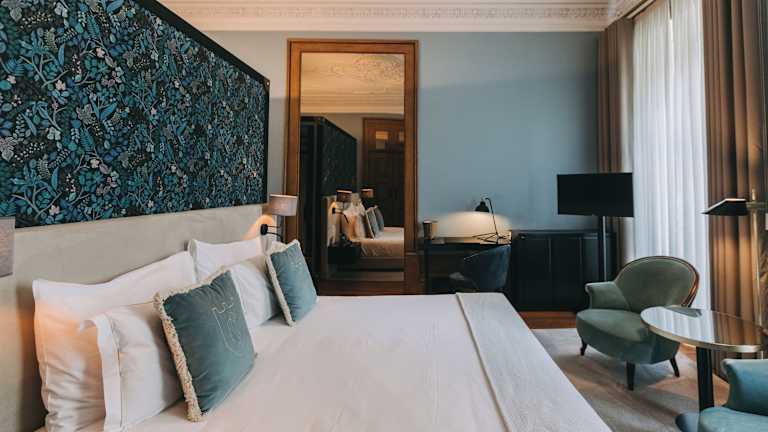 Die Zimmer sind mit Doppelbetten, Heizung, einem Schreibtisch, einer Kaffeemaschine, einem Kühlschrank, einer Minibar, einem Safe und einem Flachbild-TV ausgestattet. Jedes Zimmer verfügt über ein eigenes Badezimmer mit Dusche. Einige Zimmer bieten einen Balkon und Stadtblick.