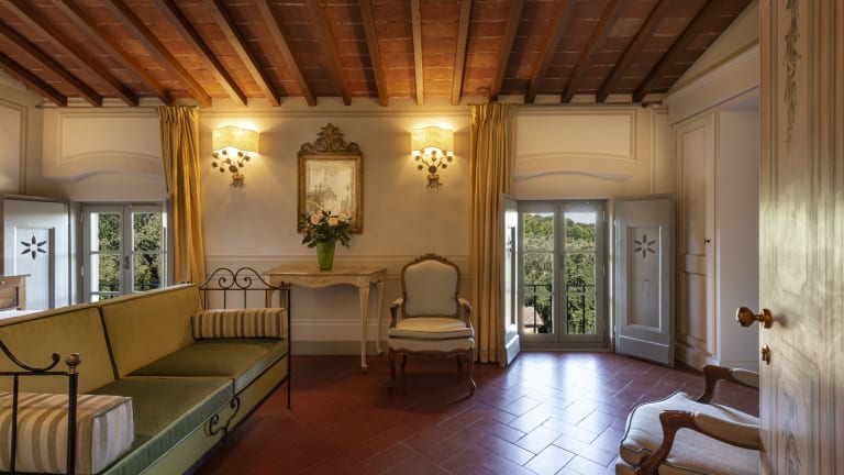 Die charmanten Räume des Anwesens befinden sich im linken Flügel der Villa aus dem achtzehnten Jahrhundert. Die Zimmer sind in die Kategorien Classic, Romantic, Romantic Toscan View und Immersive Toscan View unterteilt, zusätzlich zu den Junior Suiten und Suiten. Originelle Details sind antike Türen, Holzbalken und Terrakotta-Böden, dazu freistehende Badewannen und geschmackvolle Designelemente. Jeder Raum erinnert an die Schattierungen und Muster der toskanischen Landschaft. Für einen längeren Aufenthalt oder für Familien oder Gruppen bietet Torre a Cona seine Maisonette an; komplett restaurierte Bauernhäuser mit allem Komfort und Annehmlichkeiten für einen entspannten Aufenthalt.