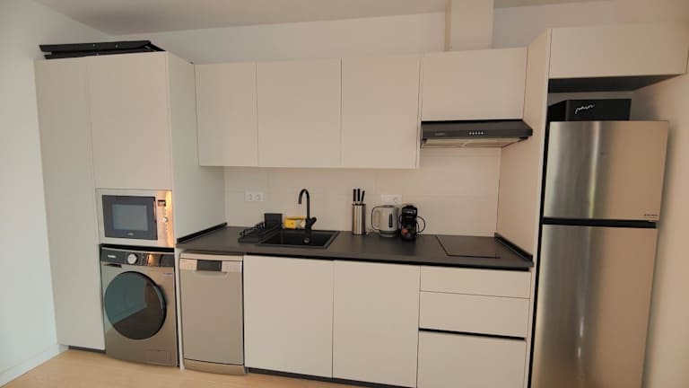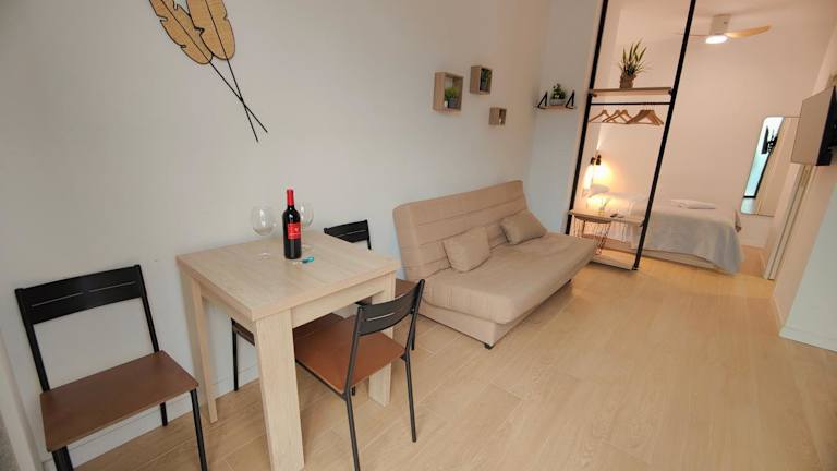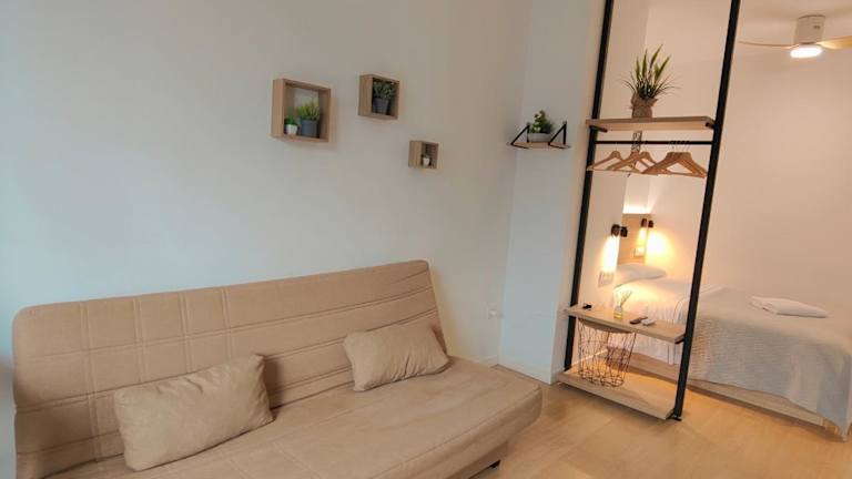 Die Ferienwohnung bietet ein Schlafzimmer sowie ein Wohnzimmer und ist mit Klimaanlage ausgestattet. Die voll ausgestattete Küche und das Badezimmer stehen ebenfalls zur Verfügung. Zudem sorgt die Schallisolierung für einen ruhigen Aufenthalt.