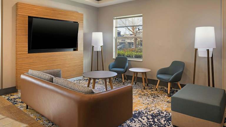 Das TownePlace Suites by Marriott Ontario Airport liegt in Rancho Cucamonga und ist nur 10 Fahrminuten vom Ontario International Airport entfernt. Die Lage des Hotels bietet eine gute Anbindung an die Umgebung, einschließlich des Ontario Convention Centers und des Einkaufszentrums Ontario Mills Mall. Die Victoria Gardens mit ihren Restaurants und Einkaufsmöglichkeiten sind ebenfalls in 10 Autominuten erreichbar.