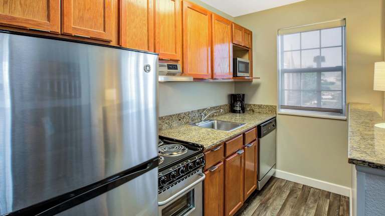Die Zimmer sind mit einer Küche und einem Badezimmer ausgestattet. Zur Verfügung stehen ein Queensizebett und ein Sofabett. Die Zimmer verfügen über eine Klimaanlage, einen Safe, eine Minibar, einen Kühlschrank, einen Herd, eine Mikrowelle, eine Tee-/Kaffeemaschine sowie ein Geschirrspüler. Im Badezimmer stehen eine Dusche und eine Badewanne zur Verfügung, ergänzt durch einen Haartrockner und Bademäntel. Für Familien und Nichtraucher stehen ebenfalls spezielle Zimmer zur Verfügung.