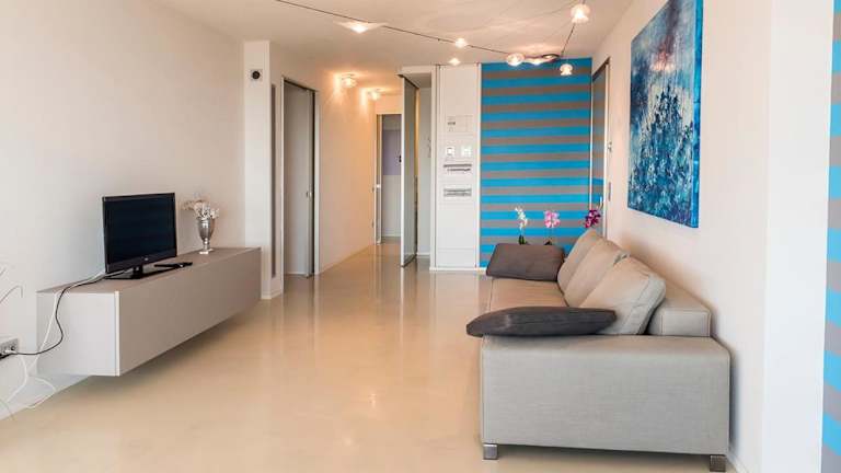 Die Ferienwohnung umfasst drei Schlafzimmer, ein Wohnzimmer, einen Flachbild-TV und eine gut ausgestattete Küche mit Kühlschrank und Geschirrspüler. Es sind zwei Badezimmer mit Bidet vorhanden. Handtücher und Bettwäsche werden gestellt. Die Unterkunft ist barrierefrei über einen Aufzug zu erreichen.