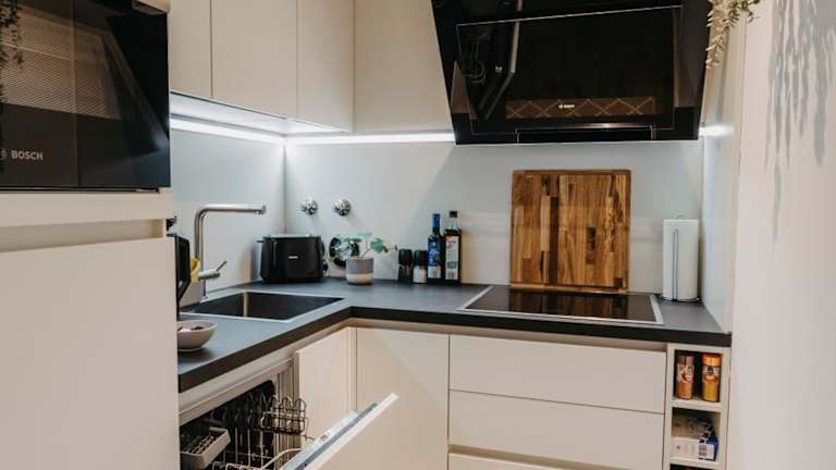 Die Ferienwohnung umfasst 1 Schlafzimmer, ein Badezimmer mit Dusche sowie eine gut ausgestattete Küche mit Kühlschrank und Geschirrspüler. Ein Flachbild-TV mit Satellitenkanälen ist ebenfalls vorhanden. Handtücher und Bettwäsche werden zur Verfügung gestellt. Das WLAN ist kostenlos und in allen Bereichen verfügbar.
