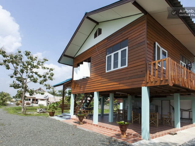 Ruhige, ländliche Lage Das Traditionale Thai Teakholtz haus liegt 14 km von der Stadt Chiang Mai, wird dieses hausvon Reisfeldern und viel Grün umgeben.