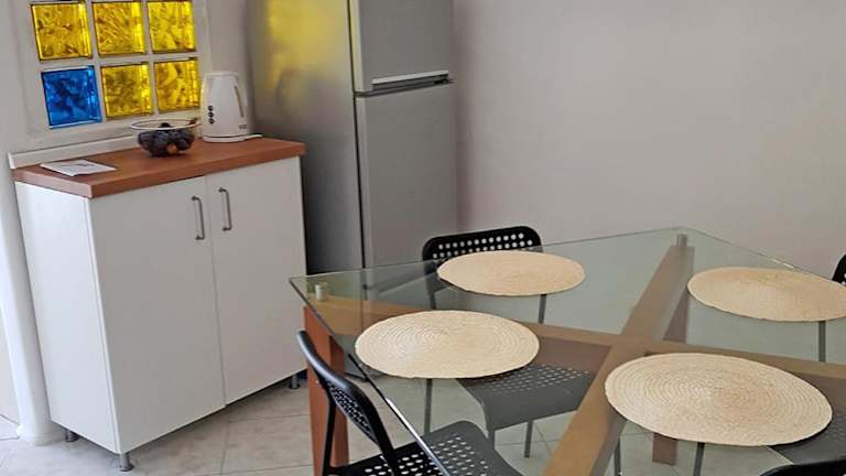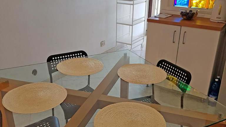 Die Ferienwohnung umfasst ein Schlafzimmer, ein Wohnzimmer sowie eine gut ausgestattete Küche mit Kühlschrank und Ofen. Es gibt zudem ein Badezimmer mit Bidet. Handtücher und Bettwäsche werden zur Verfügung gestellt.