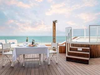 Das Trampolines Suite Hotel bietet eine grosse Terrasse mit kostenlosen Liegestühlen, einen Whirlpool sowie eine Bar. Die Unterkünfte verfügen über ein modernes Design mit Holzböden und LCD-TV. Jedes Zimmer und jede Suite hat einen Balkon oder eine Terrasse mit direktem oder seitlichem Meerblick.