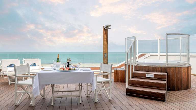 Das Hotel Trampolines Suite befindet sich nur 30 m von den Stränden von Riccione entfernt und ist nur einen kurzen Spaziergang vom Stadtzentrum entfernt. Die Wasserparks Aquafan und Oltremare sind in weniger als 10 Minuten mit dem Auto erreichbar. Der Bahnhof Riccione liegt 10 Gehminuten entfernt.