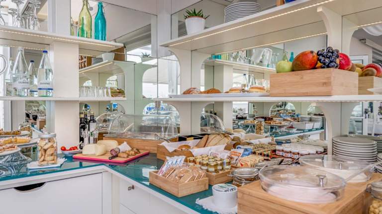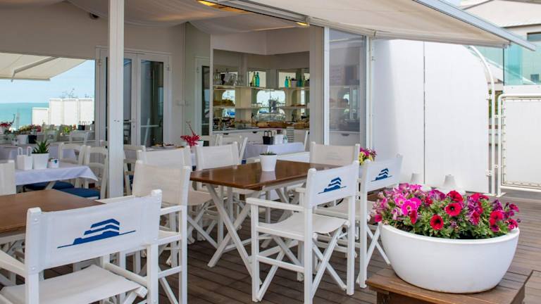 Das Frühstück kann auf der Terrasse serviert werden, und das Restaurant ist täglich geöffnet und bietet italienische Küche.