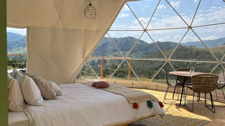 Tranquil Dome - Manta's Retreat Glamping Cornereva bietet klimatisierte Übernachtungsmöglichkeiten mit einer Terrasse. Die Zelt-Lodge besticht durch ihren heimeligen Garten, der zum Verweilen einlädt, sowie durch die Möglichkeit zur kostenlosen Parkiermöglichkeit.