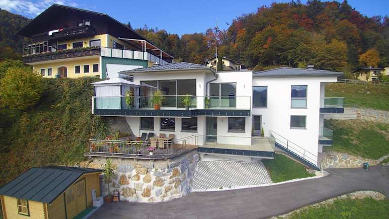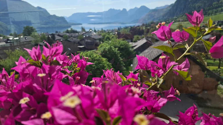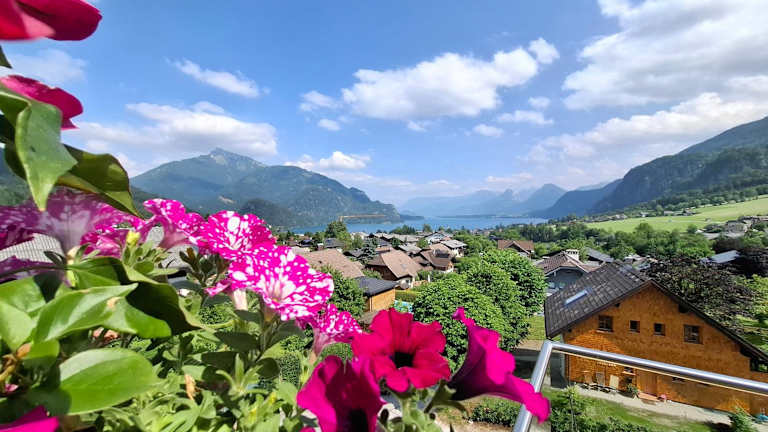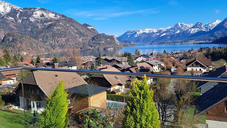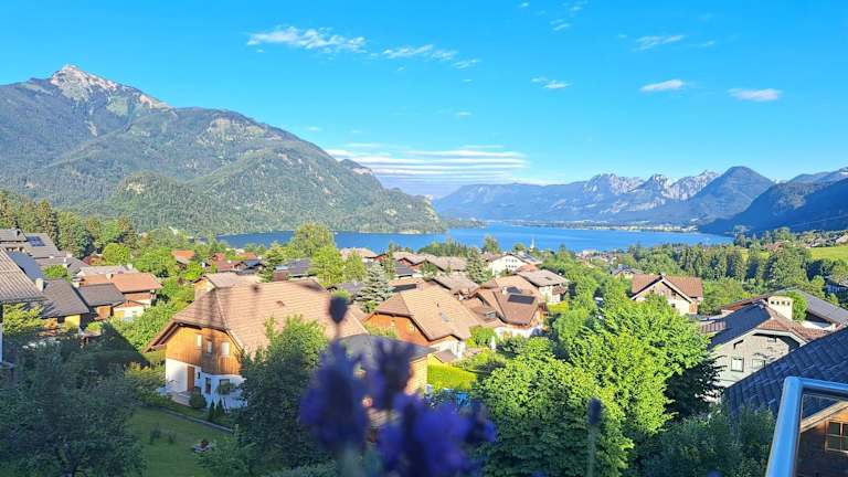 Traum Blick Sankt Gilgen bietet Übernachtungsmöglichkeiten mit einer heimeligen Veranda oder einem Patio sowie einer Kaffeemaschine. Die Ferienwohnung überzeugt durch eine Terrasse mit Bergblick.