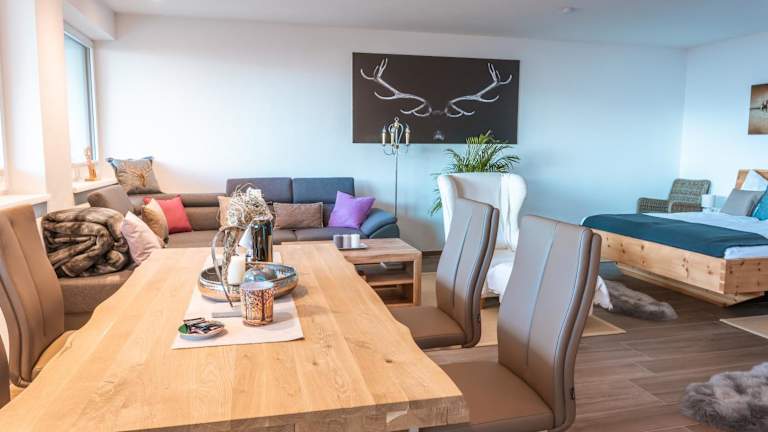 Die Ferienwohnung umfasst ein Schlafzimmer und ein Wohnzimmer. Sie ist ausgestattet mit einem Flachbild-TV, einer gut ausgestatteten Küche mit Kühlschrank und Geschirrspüler sowie einem Badezimmer mit Dusche. Handtücher und Bettwäsche werden bereitgestellt.