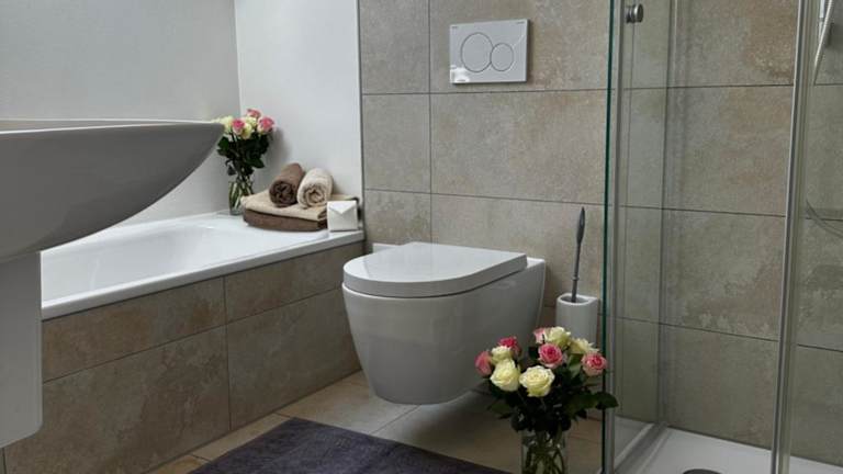 Die Ferienwohnung hat 1 Schlafzimmer, ein Wohnzimmer mit Flachbild-TV, eine gut ausgestattete Küche mit Kühlschrank und Geschirrspüler sowie 1 Badezimmer mit Dusche. Handtücher und Bettwäsche werden bereitgestellt.