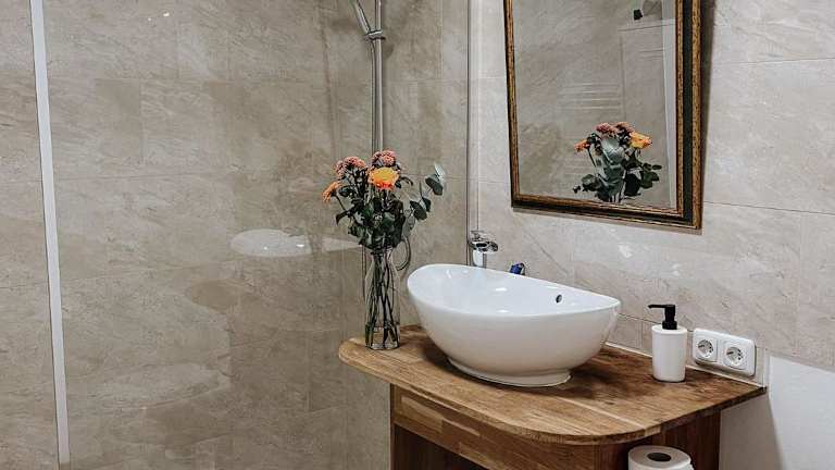 Das Apartment verfügt über ein Schlafzimmer, ein Wohnzimmer sowie ein Badezimmer mit Dusche und Haartrockner. Zur Ausstattung gehören zudem ein Kühlschrank und eine Kaffeemaschine. Handtücher und Bettwäsche werden bereitgestellt.