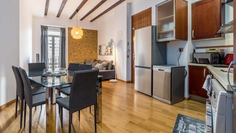 Das Travel Habitat Jardines Rio Turia in Valencia bietet eine ideale Unterkunft im Viertel La Saidia, in der Nähe vieler beliebter Sehenswürdigkeiten. Mit einem Balkon und Flussblick sowie kostenfreiem WLAN in allen Bereichen können Sie hier einen komfortablen Aufenthalt genießen. Das Apartment verfügt über 2 Schlafzimmer, ein Wohnzimmer, eine voll ausgestattete Küche und ein Badezimmer. Handtücher und Bettwäsche werden gestellt. Nutzen Sie auch den Fahrradverleih und erkunden Sie die Umgebung. Beliebte Sehenswürdigkeiten wie das Nationalmuseum für Keramik und Dekorative Kunst González Martí sowie die Kirche Saint Nicolás sind in der Nähe. Der Flughafen Valencia ist nur 9 km entfernt und ein kostenpflichtiger Flughafentransfer wird angeboten.