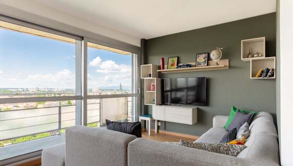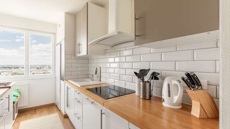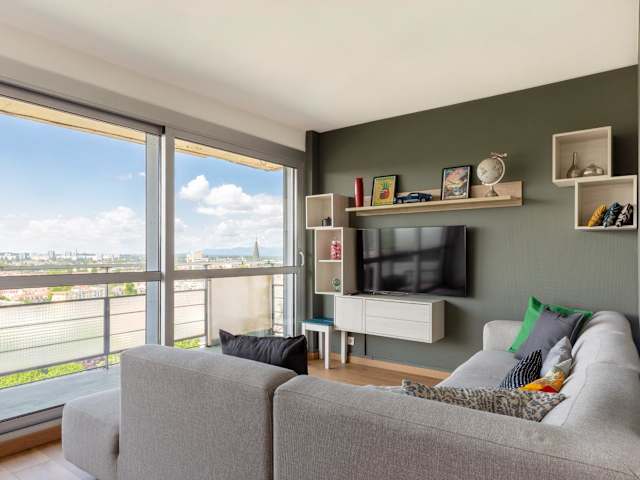 Die Ferienwohnung verfügt über 2 Schlafzimmer und 1 Badezimmer. Zur Ausstattung gehören Bettwäsche, Handtücher, ein Flachbild-TV, ein Essbereich sowie eine voll ausgestattete Küche. Zudem bietet die Unterkunft eine Terrasse mit Stadtblick.