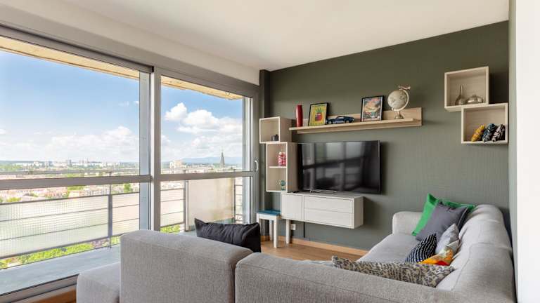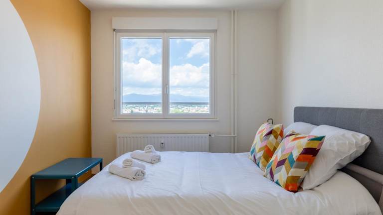 Die Unterkunft befindet sich ca. 200 m vom Bahnhof Mülhausen entfernt und bietet einen malerischen Blick auf die Berge.