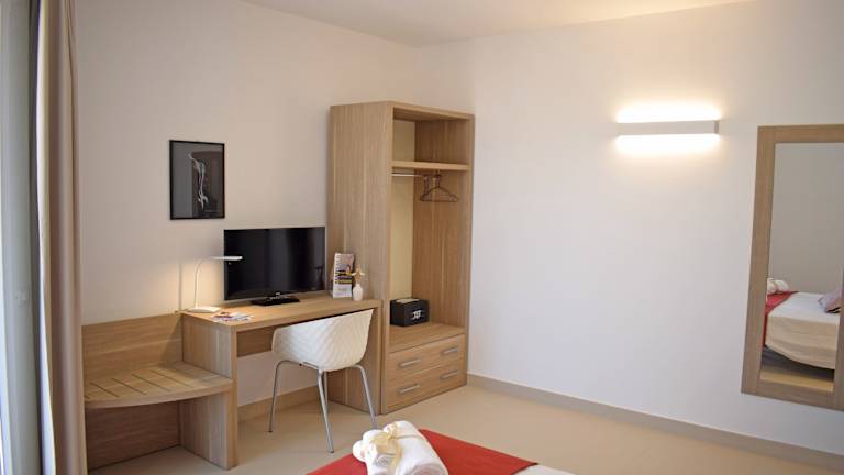 Die Zimmer im Travini Hotel Residence verfügen über eine Heizung und sind mit einem Queensize-Bett oder einem Sofabett ausgestattet. Zustellbetten können auf Anfrage bereitgestellt werden. Auch ein Safe, eine Minibar und ein Fernseher sind vorhanden, sowie kostenloses Wifi. Die Badezimmer sind mit einem Haartrockner ausgestattet. Die Ferienanlage bietet rollstuhlgerechte Zimmer sowie Familien- und Nichtraucherzimmer.