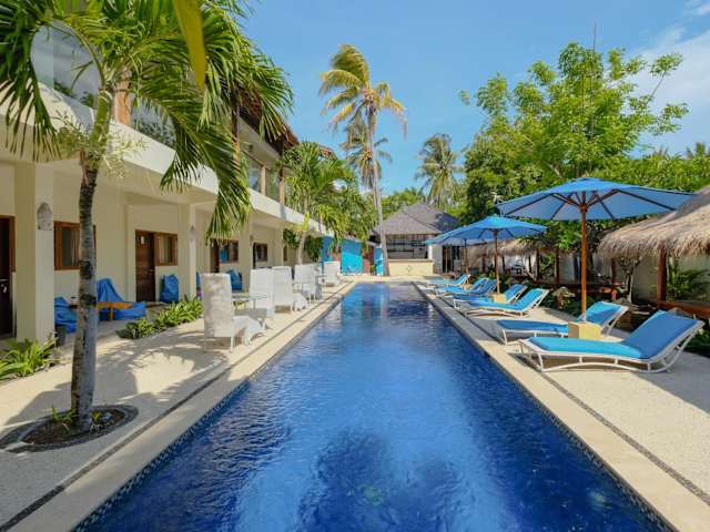 Trawangan Nirvana besticht durch einen heimeligen Aussenpool, einen Garten und eine Sonnenterrasse. Zusätzliche Bequemlichkeiten umfassen kostenloses Wifi und Zimmerservice. Die Unterkunft wurde im Jahr 2016 erbaut und bietet eine angenehme Atmosphäre für Gäste.