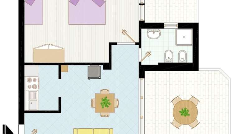 Die Ferienwohnung besteht aus einem Schlafzimmer, einem Wohnzimmer und einem Badezimmer mit Bidet und Dusche. Die Zimmer sind klimatisiert und es sind Betten für kleine Gäste (Babybett) verfügbar.