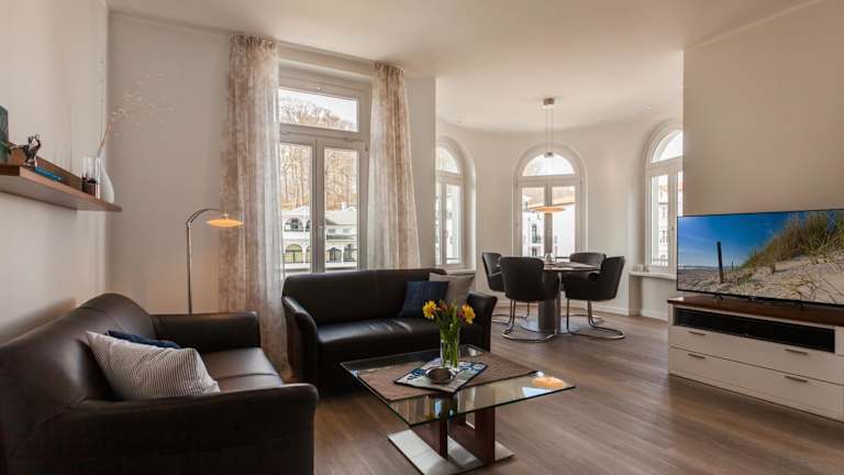 Die Unterkunft Treibgut befindet sich im Ostseebad Sellin, nur 400 Meter vom Hundestrand entfernt. Die Umgebung bietet vielfältige Möglichkeiten für Wanderungen und Velofahren.