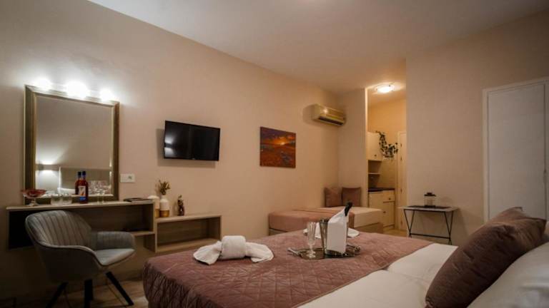 Jede Wohneinheit verfügt über eine Terrasse mit Meerblick, einen Flachbild-TV, eine gut ausgestattete Küche, ein eigenes Badezimmer mit Dusche, kostenlosen Pflegeprodukten und einem Haartrockner. Zu den weiteren Annehmlichkeiten gehören ein Kühlschrank und ein Wasserkocher. Familienzimmer sind ebenfalls vorhanden.