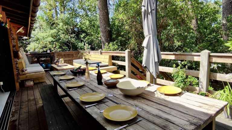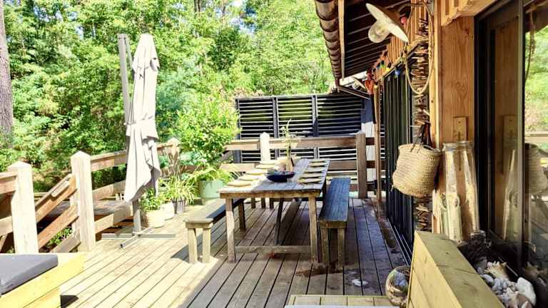 Das Ferienhaus Tres belle maison en bois ist eine attraktive Holzkonstruktion, die klimatisierte Übernachtungsmöglichkeiten für bis zu 10 Personen bietet. Die Übernachtungsmöglichkeiten umfassen eine Terrasse, einen Garten und einen Aussenpool.