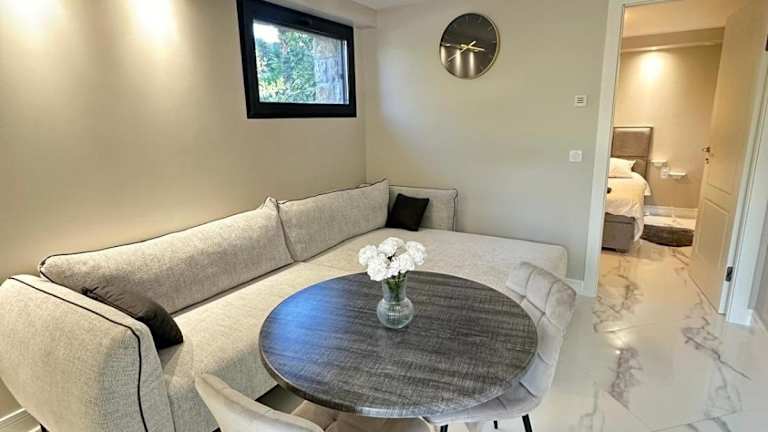 Die Unterkunft ist klimatisiert und umfasst ein Schlafzimmer, ein Wohnzimmer sowie eine voll ausgestattete Küche mit Kühlschrank und Kaffeemaschine. Ein Badezimmer mit Dusche und kostenlosen Pflegeprodukten ist ebenfalls vorhanden. Handtücher und Bettwäsche werden bereitgestellt.