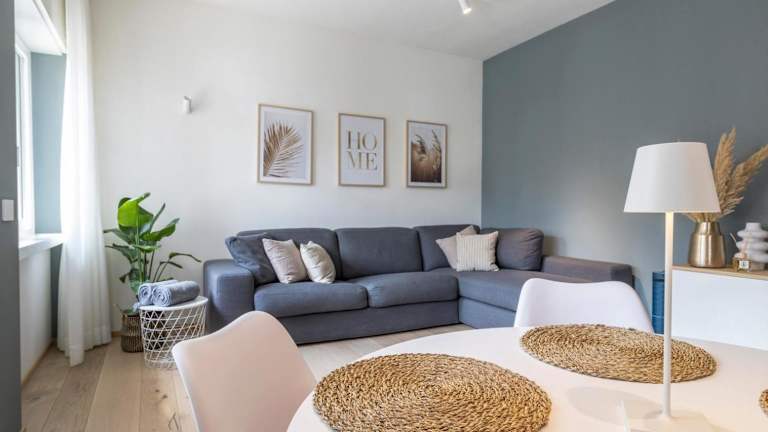 Die Ferienwohnung umfasst zwei Schlafzimmer, ein Wohnzimmer und eine voll ausgestattete Küche mit Kühlschrank und Kaffeemaschine. Das Badezimmer ist mit einem Bidet und einer Dusche ausgestattet. Handtücher und Bettwäsche werden zur Verfügung gestellt.