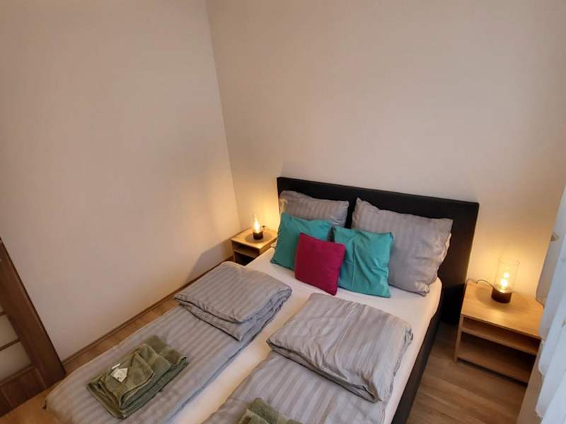 Die Ferienwohnung besteht aus einem Schlafzimmer und einem Wohnzimmer. Sie ist mit einer voll ausgestatteten Küche mit Kühlschrank und Kaffeemaschine ausgestattet. Das Badezimmer verfügt über eine Dusche und kostenlose Pflegeprodukte. Handtücher und Bettwäsche werden bereitgestellt.
