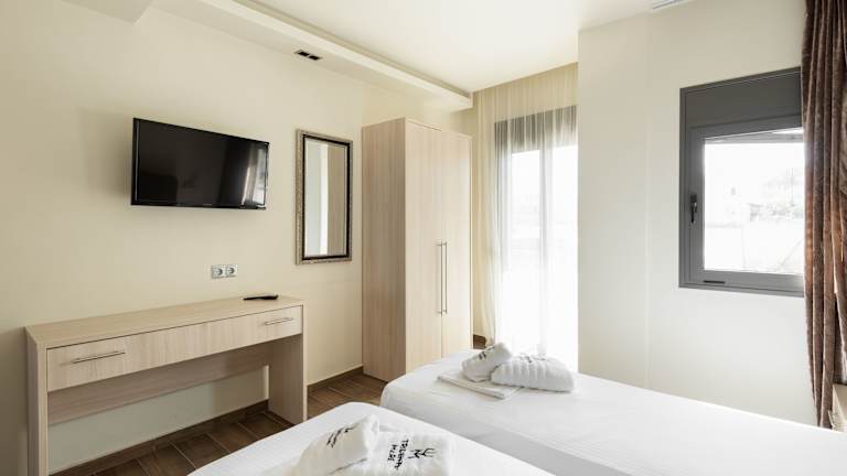 Das Tridente Mare Apart Hotel liegt ideal in der Nähe des Strandes Pefkohori, so dass Sie nur wenige Schritte gehen müssen, um das kristallklare Wasser und den feinen Sand zu genießen. In der Umgebung gibt es auch verschiedene Restaurants, Bars und Geschäfte, die Sie erkunden können. Wenn Sie gerne wandern, gibt es in der Umgebung viele Wanderwege, die Sie durch die schöne Landschaft führen. Der Flughafen Thessaloniki ist etwa 96 km entfernt und kann mit dem kostenpflichtigen Flughafentransfer erreicht werden.