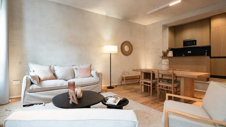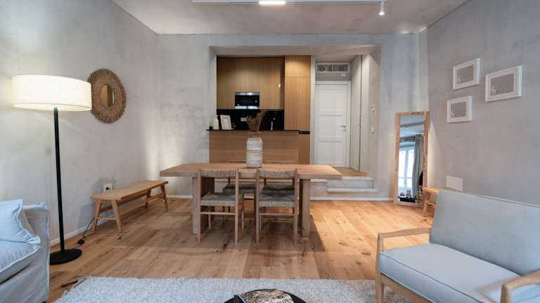 Die Ferienwohnung besteht aus einem Schlafzimmer, einem Wohnzimmer sowie einer voll ausgestatteten Küche mit Kühlschrank und Kaffeemaschine. Zudem sind ein Badezimmer mit Dusche und Haartrockner vorhanden. Ein Flachbild-TV sorgt für Unterhaltung.