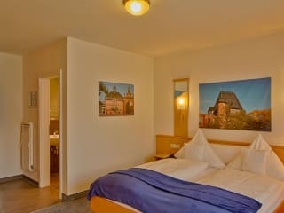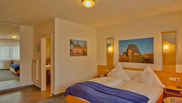 Das TRIP INN Hotel Römerhof in Hanau ist die Dependance des Hotels „Zum Riesen“ für besonders preisbewusste Gäste. Hier finden Sie komfortabel und zweckmäßig eingerichtete Einzel-, Doppel- bzw. Twinbettzimmer zu einem außergewöhnlich guten Preis-Leistungsverhältnis und kostenfreiem Highspeed-WLAN. Die Rezeption, unsere hervorragend sortierte Hotelbar und den Frühstücksraum finden Sie in unserem Haupthaus, das sich direkt um die Ecke im Heumarkt 8 befindet. Seit fast 400 Jahren existiert das Hotel Zum Riesen und hat schon manch berühmten Zeitgenossen beherbergt. Zu den zufriedenen Gästen des – im 2. Weltkrieg zerstörten – Vorgängerbaus zählten etwa Napoleon oder Ludwig Emil Grimm, der jüngste Bruder von Jacob und Wilhelm Grimm, die allesamt in Hanau geboren wurden. Auch heute zählt das „Zum Riesen“ zu den ersten Adressen der Brüder-Grimm-Stadt Hanau und bietet neben der hervorragenden Innenstadtlage eine familiäre Atmosphäre und exzellent ausgestattete Zimmer und Suiten. Für die Gäste des „Römerhof“ bieten wir gegen einen kleinen Aufpreis das Frühstück im Haupthaus sowie den dortigen Fitnessraum und die Sauna an.