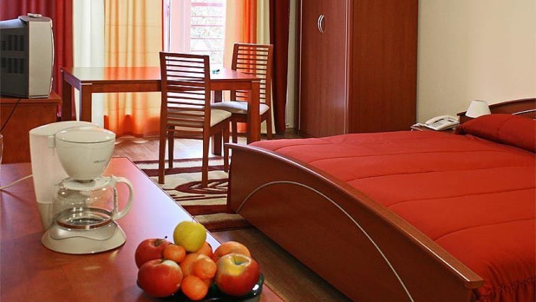 Das 2006 erbaute 4* Hotel Casa Sol verfügt über 38 extra-grosse Nichtraucherzimmer im traditionell europäischen Stil. Die Grösse von unseren Standardzimmern (für 1-3 Personen) ist über Durchschnitt, 30-35 qm, und unsere 4 Suiten (für 4-6 Personen) sind 60-66 qm. Die Zimmer bieten eine freundliche und gemütliche Atmosphäre, ein eigenes Bad, Klimaanlage, Telefon, Radio, TV, Arbeitsplatz, bequeme Sitzmöglichkeiten, kostenloses WLAN, Haartrockner und Eurosteckdosen dienen das Wohlfühlen und Bequemlichkeit unserer Gäste. Zudem sind alle Zimmer mit einer Küche mit Kochplatte und Kühlschrank, sowie auf Anfrage mit Mikrowelle, Kaffeemaschine und Küchenutensilien ausgestattet. Wir erwarten unsere - in ihrer Bewegung behinderten Gäste mit Zimmern, die auf ihren Ansprüchen ausgestattet sind.