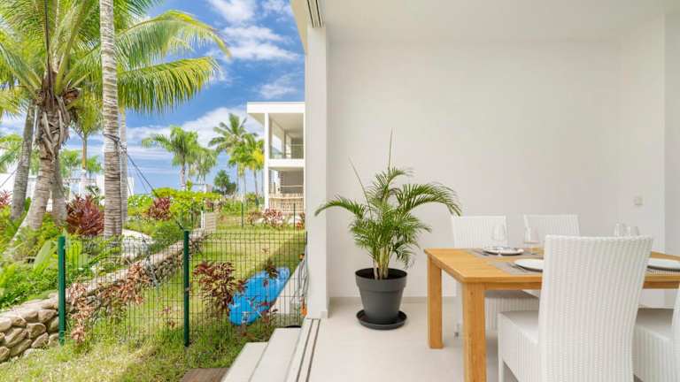 Die Ferienwohnung verfügt über 1 Schlafzimmer und 1 Badezimmer. Zur Ausstattung gehören Bettwäsche und Handtücher, ein TV sowie ein Essbereich. Die voll ausgestattete Küche ermöglicht eine unkomplizierte Selbstverpflegung. Von der Terrasse aus geniessen die Gäste einen bezaubernden Meerblick.
