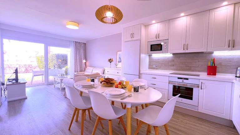 Die Ferienwohnung umfasst 2 Schlafzimmer, 1 Badezimmer und ist vollständig ausgestattet. Sie bietet Bettwäsche, Handtücher, einen Flachbild-TV, einen Essbereich sowie eine voll ausgestattete Küche. Eine Terrasse mit Poolblick ergänzt das Angebot.