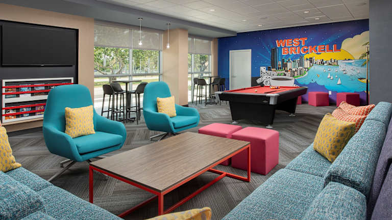 Tru By Hilton Miami West Brickell bietet den Gästen ein freundliches Ambiente mit verschiedenen Annehmlichkeiten. Zu den Einrichtungen gehören eine Gepäckaufbewahrung, ein Safe, ein Aufzug sowie rollstuhlgerechte Einrichtungen. WLAN ist in den öffentlichen Bereichen verfügbar. Zusätzlich stehen Spielmöglichkeiten für Kinder wie ein Spielplatz und ein Spielzimmer zur Verfügung. Das Hotel ist seit 2022 geöffnet und bietet einen 24-Stunden-Sicherheitsdienst sowie eine rund um die Uhr besetzte Rezeption.